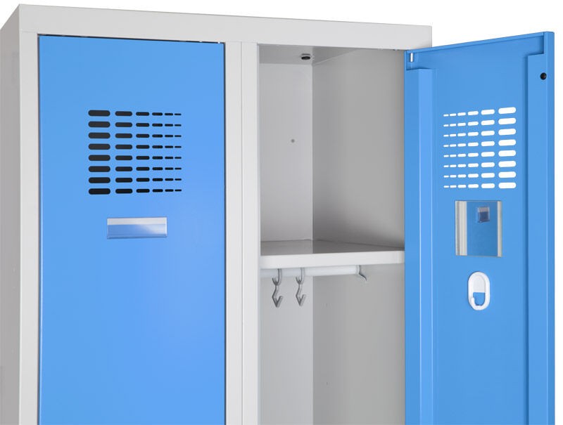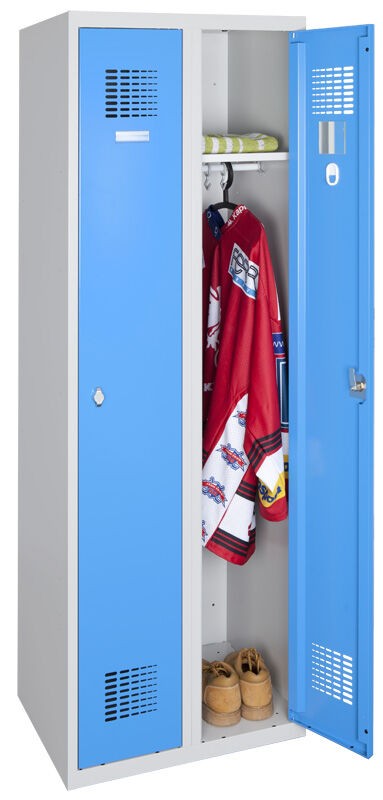 Svařovaný 2-dveřový šatník na soklu.
