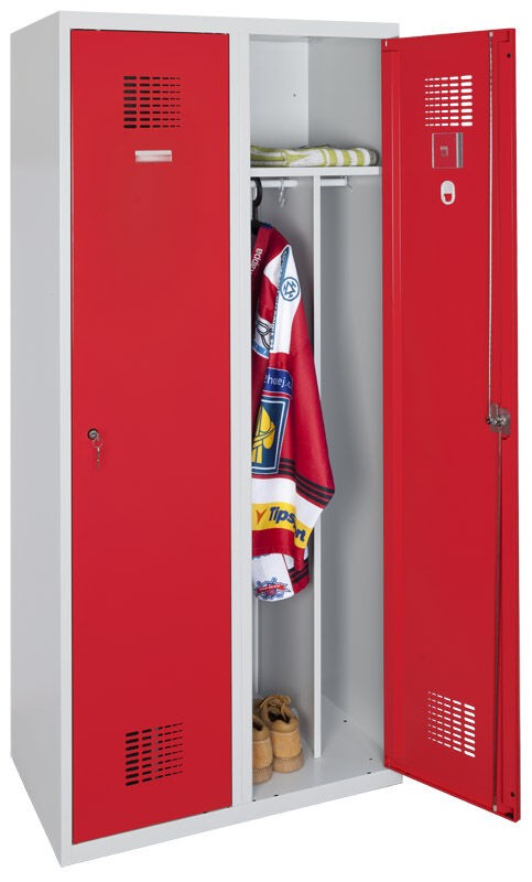 Svařovaný 2-dveřový šatník na soklu.