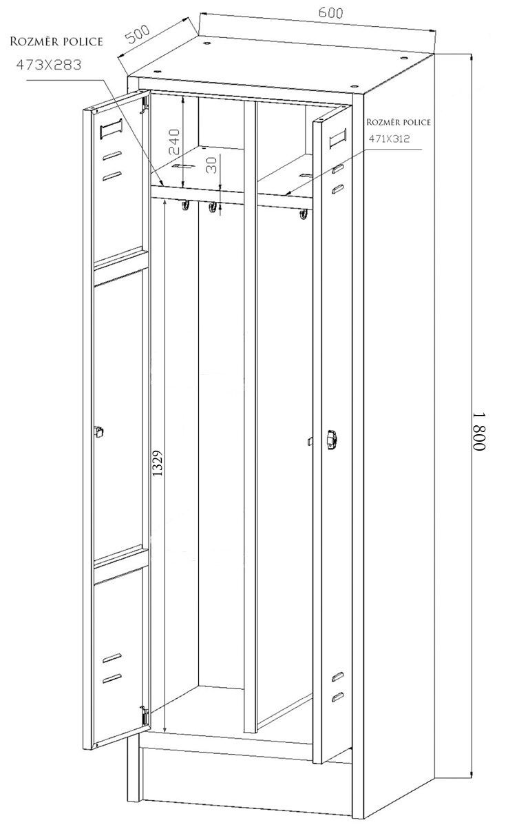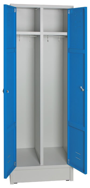 Svařovaný 2-dveřový šatník na soklu.