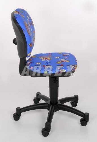 Dětská židle - motiv Večerníček je výškově stavitelná pomocí pístu, s velkým opěrákem.