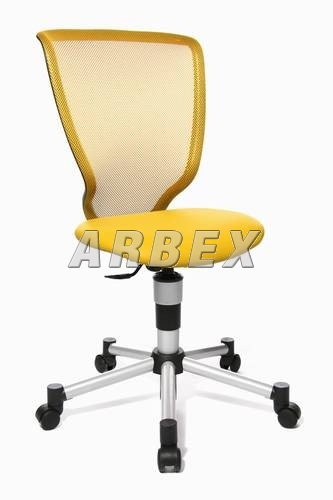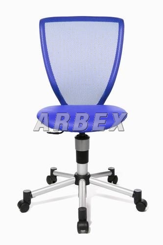 Dětská židle do moderního interiéru s ergonomicky tvarovaným opěrákem potaženým vzdušnou síťovinou.