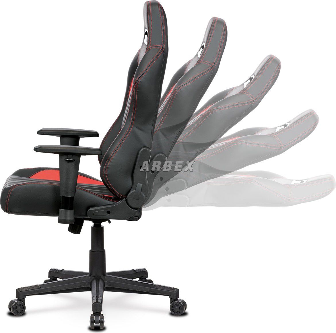 Skvělé herní křeslo KA-F06 je další zástupce z kolekce Eracer. Jedná se o designové moderní křeslo, navržené nejen pro náročné požadavky PC hráčů, ale je uzpůsobené i pro standardní kancelářskou práci. To vše v maximálním pohodlí a při dokonalé ergonomii sezení. Potah je kombinací černé a červené ekokůže s vyšívaným nápisem „eracer“. Vnitřní rám je svařený z ohýbaných ocelových trubek a tvoří pevnou základnu pro celé křeslo. Výplň sedáku i opěráku je z kvalitní a tuhé PU pěny, vyztužení a pružnost zajišťují látkové popruhy s kovovým uchycením do konstrukce. Křeslo je vybaveno houpacím mechanismem. Síla houpání se reguluje plastovým šroubem pod sedákem. Výška sezení se upravuje páčkou na pravé straně přes kvalitní plynový píst. Černý masivní plastový kříž s černými plastovými protiskluzovými prvky a je osazen černými plastovými kolečky vhodnými na koberce. Vysoký opěrák slouží nejen jako výborná opora celých zad a podporuje správné držení páteře, ale je možné nastavit jeho sklon od 90°až do 180° a to v jakékoli poloze. K ovládání slouží mechanismus s páčkou umístěný na pravé straně. 2D područky jsou s měkkým povrchem, výškově stavitelné a s natáčecí opěrkou. Nosnost židle je až 130 kg. Herní křesla z kolekce Eracer jsou skvělou volbou, ať je zaparkujete za hrací či kancelářský stůl. Vždy působí dominantně, jako nepřehlédnutelný solitér. Kvalita zpracování, důraz na pohodlí a ergonomii, to zaručuje pohodu při dlouhých herních večerech i denní kancelářské práci. A jako bonus, ke krátkodobému odpočinku můžete využít opěrák, sklopený téměř do horizontální polohy.