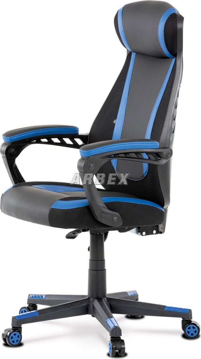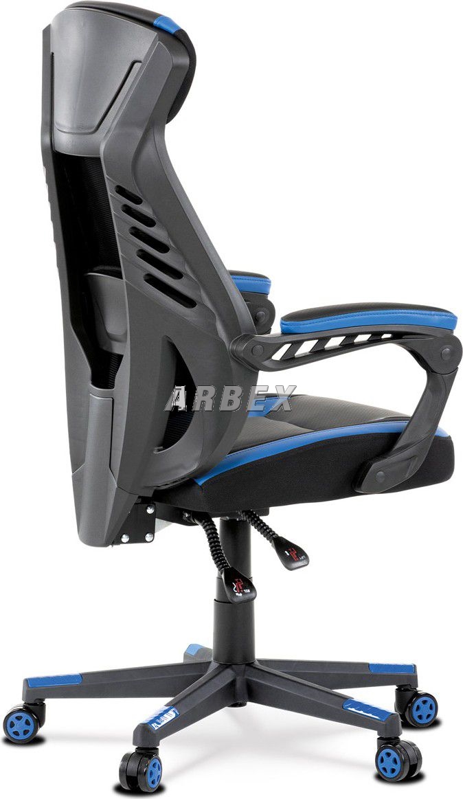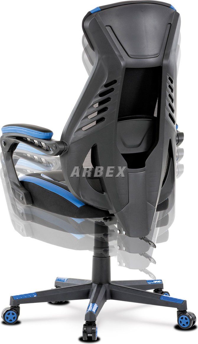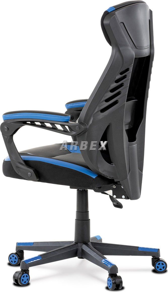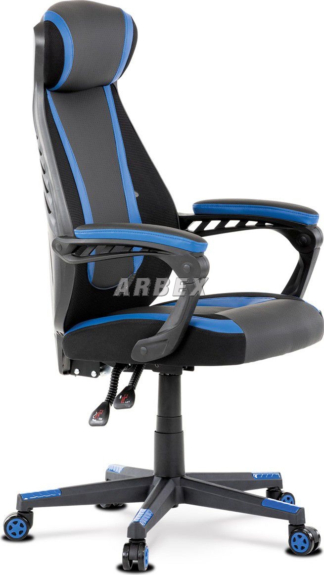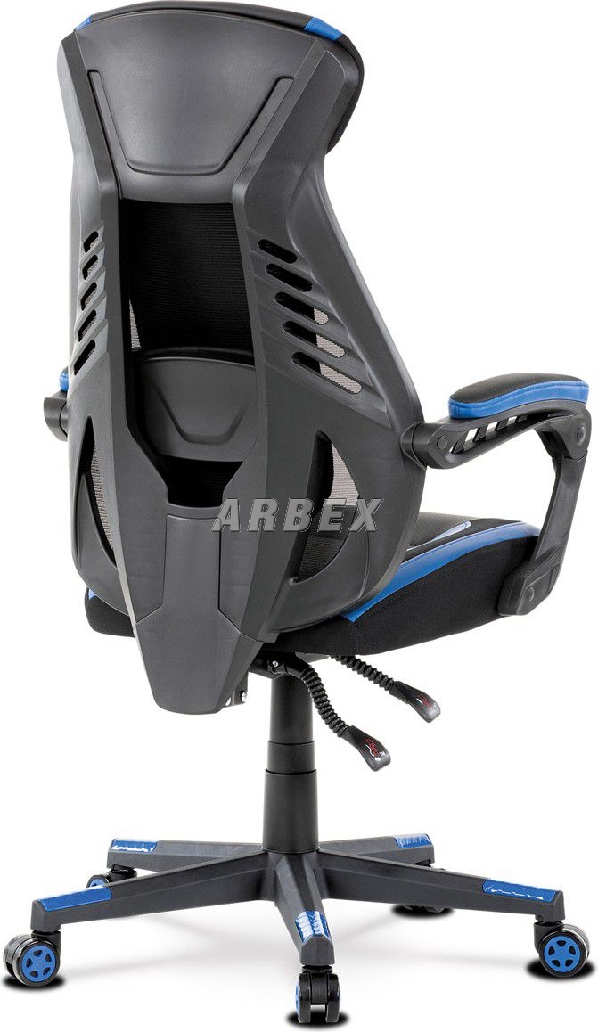 Luxusní herní a kancelářské křeslo z kolekce TOP racing. Jedná se o moderní designové křeslo, navržené nejen pro náročné požadavky PC hráčů, ale je uzpůsobené i pro standardní kancelářskou práci. To vše v maximálním pohodlí a při dokonalé ergonomii sezení. Potah je kombinací modré a černé perforované ekokůže na sedáku i opěráku, černé síťoviny MESH a černé, jemně hrubé látky látky na sedáku i bocích opěrky hlavy. Opěrák je černý plastový výlisek ve futuristickém designu. Výplň sedáku i hlavové opěrky je z velmi kvalitní a tuhé PU pěny, vyztužení a pružnost zajišťují látkové popruhy. Křeslo je vybaveno permanent contact mechanismem s plynulou aretací. Při vypnutí je možné se s opěradlem volně pohupovat. Výška sezení se upravuje jednou páčkou na pravé straně přes kvalitní plynový píst. Poloha opěráku se nastavuje druhou páčkou, umístěnou rovněž na pravé straně křesla. Masivní černý plastový kříž s modrými protiskluzovými plastovými doplňky je osazen černými plastovými kolečky pr. 6 cm s modrým racing středem a gumovým obvodem ideálními na tvrdé podlahy. Se stabilitou celých 70 cm průměru kříže si můžete dovolit i ty nejnáročnější hry. Vysoký, prodyšný a ergonomicky navržený opěrák s integrovanou zesílenou opěrkou hlavy, polstrovanou a výškově nastavitelnou bederní opěrkou slouží nejen jako výborná opora celých zad a také podporuje správné držení páteře. Područky jsou plastové, polstrované a potažené modrou a černou ekokůží. Šíře je 7 cm, délka ložné plochy 33 cm a výška 3 cm. Při sklápění sedáku se pohybují a kopírují jeho pohyb a polohu. Nosnost židle je až 130 kg. Toto herní a kancelářské křeslo je skvělou volbou, ať stojí za hracím či kancelářským stolem. Vždy působí luxusně, jako nepřehlédnutelný designový solitér. Kvalita zpracování, důraz na pohodlí a ergonomii, to zaručuje pohodu při dlouhých herních večerech i denní kancelářské práci. Budete mít velké dilema, zda toto křeslo opustíte a vezmete zavděk obyčejným křeslem a nebo na něm zůstanete i při relaxu či sledování televize ...
