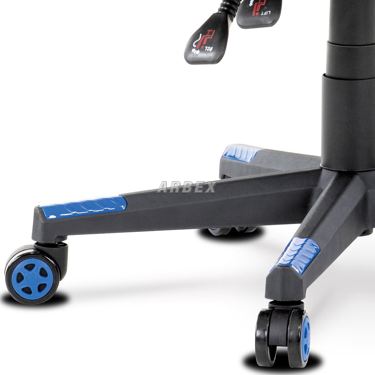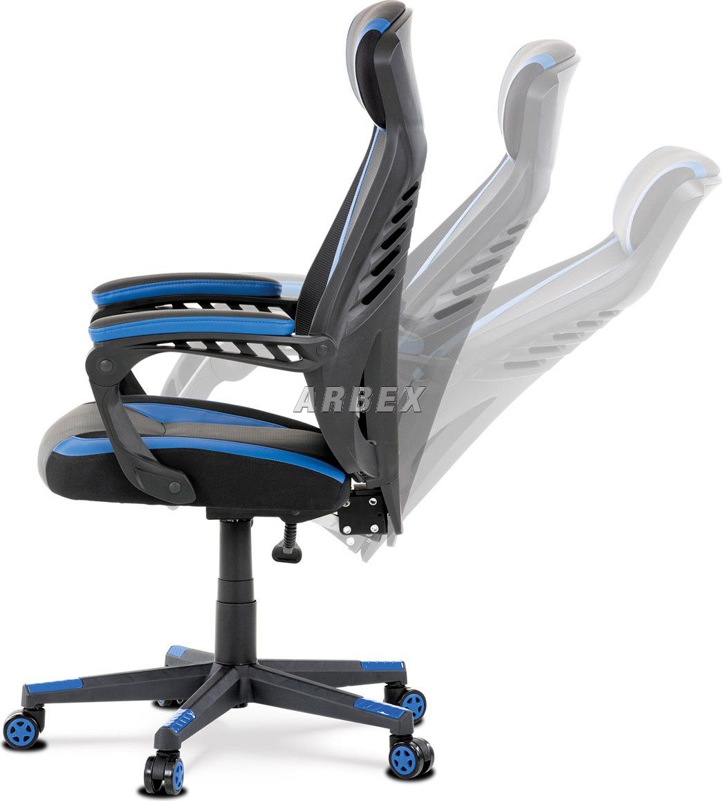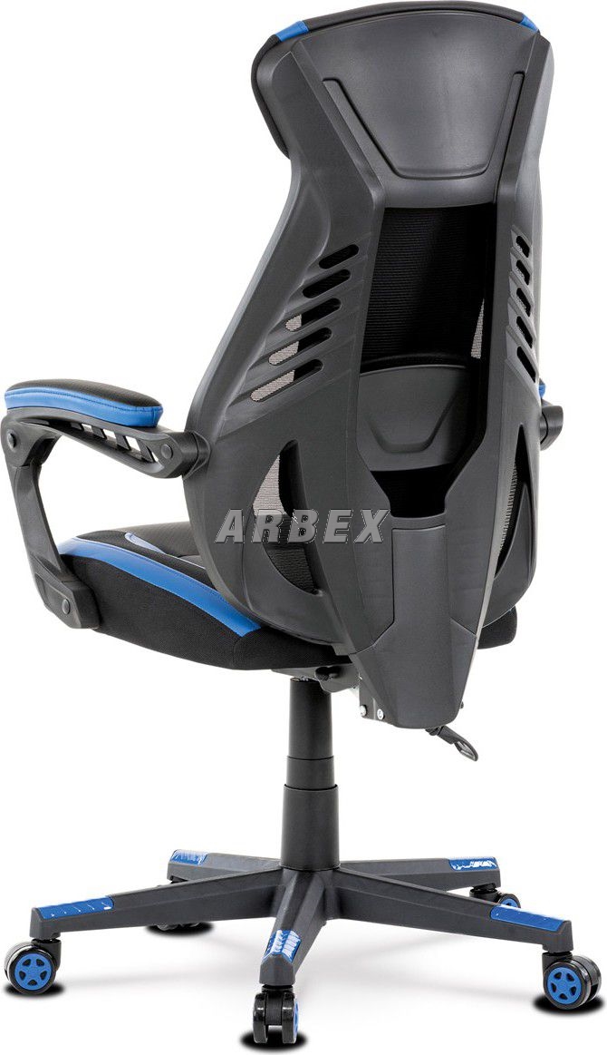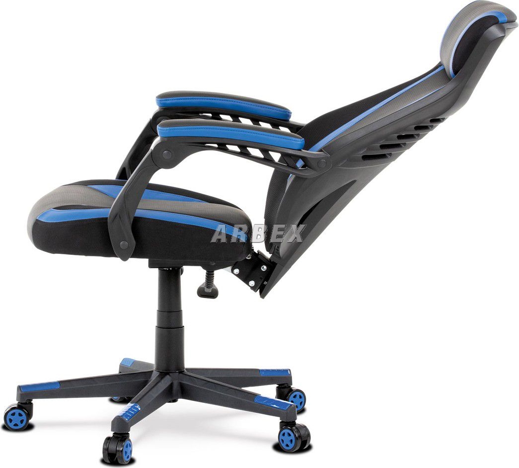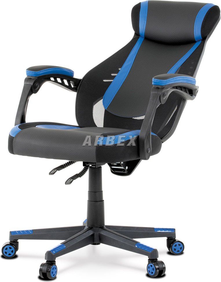 Luxusní herní a kancelářské křeslo z kolekce TOP racing. Jedná se o moderní designové křeslo, navržené nejen pro náročné požadavky PC hráčů, ale je uzpůsobené i pro standardní kancelářskou práci. To vše v maximálním pohodlí a při dokonalé ergonomii sezení. Potah je kombinací modré a černé perforované ekokůže na sedáku i opěráku, černé síťoviny MESH a černé, jemně hrubé látky látky na sedáku i bocích opěrky hlavy. Opěrák je černý plastový výlisek ve futuristickém designu. Výplň sedáku i hlavové opěrky je z velmi kvalitní a tuhé PU pěny, vyztužení a pružnost zajišťují látkové popruhy. Křeslo je vybaveno permanent contact mechanismem s plynulou aretací. Při vypnutí je možné se s opěradlem volně pohupovat. Výška sezení se upravuje jednou páčkou na pravé straně přes kvalitní plynový píst. Poloha opěráku se nastavuje druhou páčkou, umístěnou rovněž na pravé straně křesla. Masivní černý plastový kříž s modrými protiskluzovými plastovými doplňky je osazen černými plastovými kolečky pr. 6 cm s modrým racing středem a gumovým obvodem ideálními na tvrdé podlahy. Se stabilitou celých 70 cm průměru kříže si můžete dovolit i ty nejnáročnější hry. Vysoký, prodyšný a ergonomicky navržený opěrák s integrovanou zesílenou opěrkou hlavy, polstrovanou a výškově nastavitelnou bederní opěrkou slouží nejen jako výborná opora celých zad a také podporuje správné držení páteře. Područky jsou plastové, polstrované a potažené modrou a černou ekokůží. Šíře je 7 cm, délka ložné plochy 33 cm a výška 3 cm. Při sklápění sedáku se pohybují a kopírují jeho pohyb a polohu. Nosnost židle je až 130 kg. Toto herní a kancelářské křeslo je skvělou volbou, ať stojí za hracím či kancelářským stolem. Vždy působí luxusně, jako nepřehlédnutelný designový solitér. Kvalita zpracování, důraz na pohodlí a ergonomii, to zaručuje pohodu při dlouhých herních večerech i denní kancelářské práci. Budete mít velké dilema, zda toto křeslo opustíte a vezmete zavděk obyčejným křeslem a nebo na něm zůstanete i při relaxu či sledování televize ...