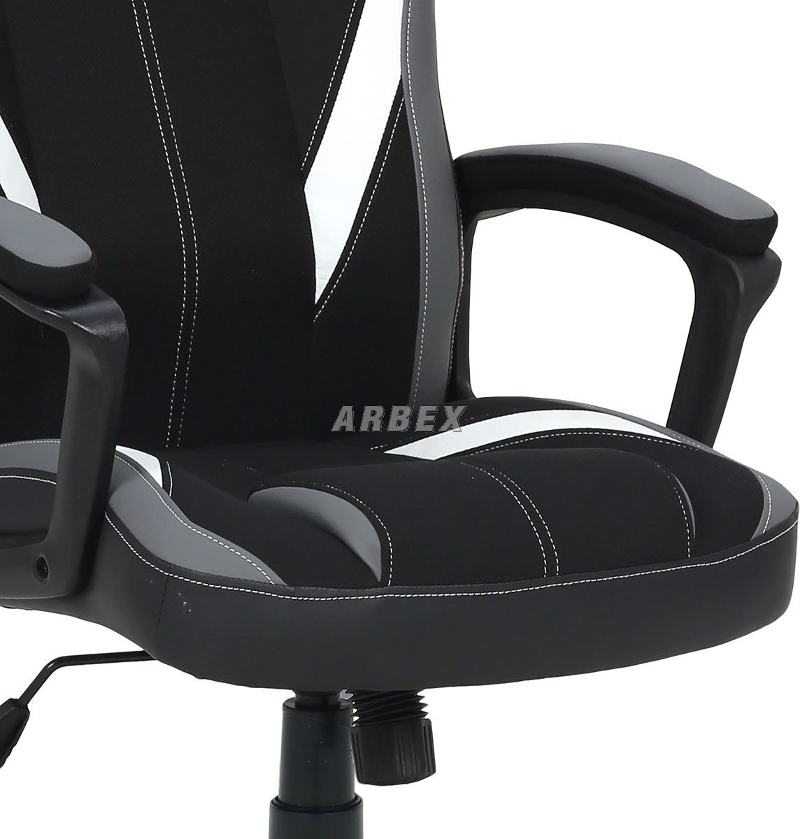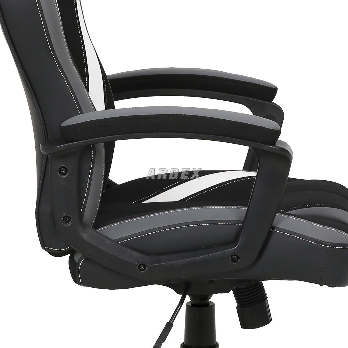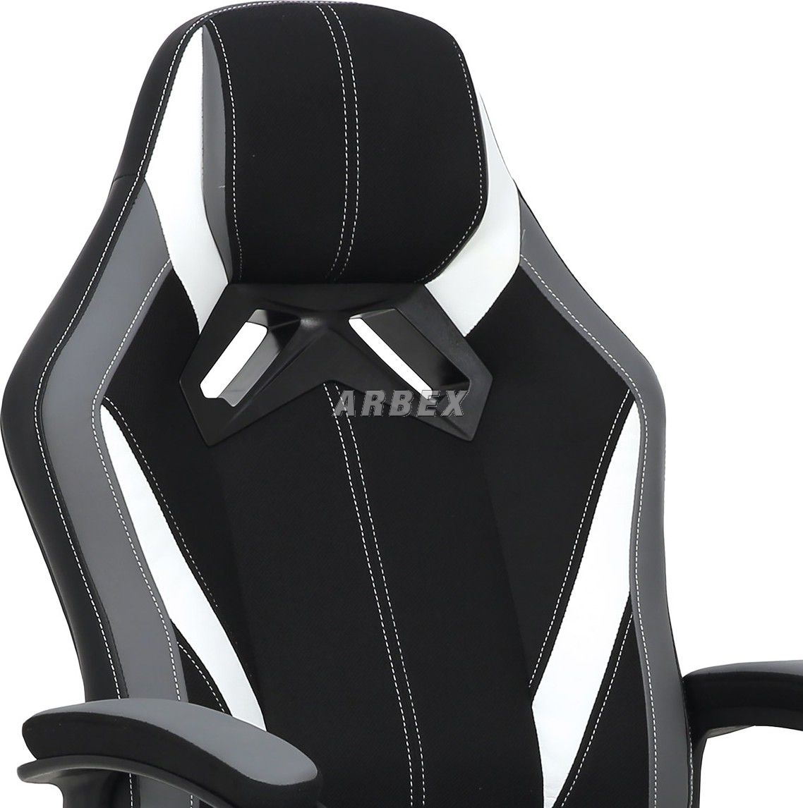 Elegantní a výrazné sportovní kancelářské křeslo v designu sedačky závodního vozu a zaoblenými liniemi. Má výborné ergonomické rozvržení. Potah je kombinací černé a šedé látky a bílé ekokůže, s decentním bílým prošíváním celého křesla. Kostra je z ocelových ohýbaných trubek. Masivní polstrování sedáku i opěráku z kvalitní PU pěny je zárukou pohodlného posezení při herních večerech. Ruce si můžete pohodlně položit na pevné plastové područky, opěrky jsou rovněž polstrované a potažené černou a šedou látkou. Křeslo je vybaveno houpacím mechanismem. Síla houpání se reguluje plastovým šroubem pod sedákem. Výška sezení se upravuje páčkou na pravé straně přes kvalitní plynový píst. Masivní černý plastový kříž s černými protiskluzovými doplňky je osazen plastovými kolečky vhodnými na koberce. Nosnost židle je 120 kg. Kvalita zpracování, důraz na pohodlí a ergonomii zaručuje pohodu při dlouhých herních večerech i denní kancelářské práci. A díky barevným liniím se stane výrazným a nepřehlédnutelným solitérem.