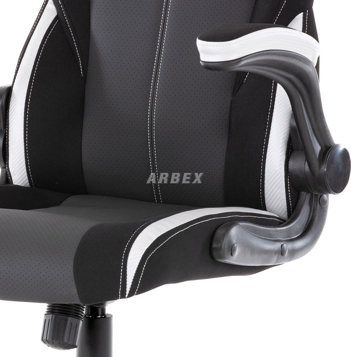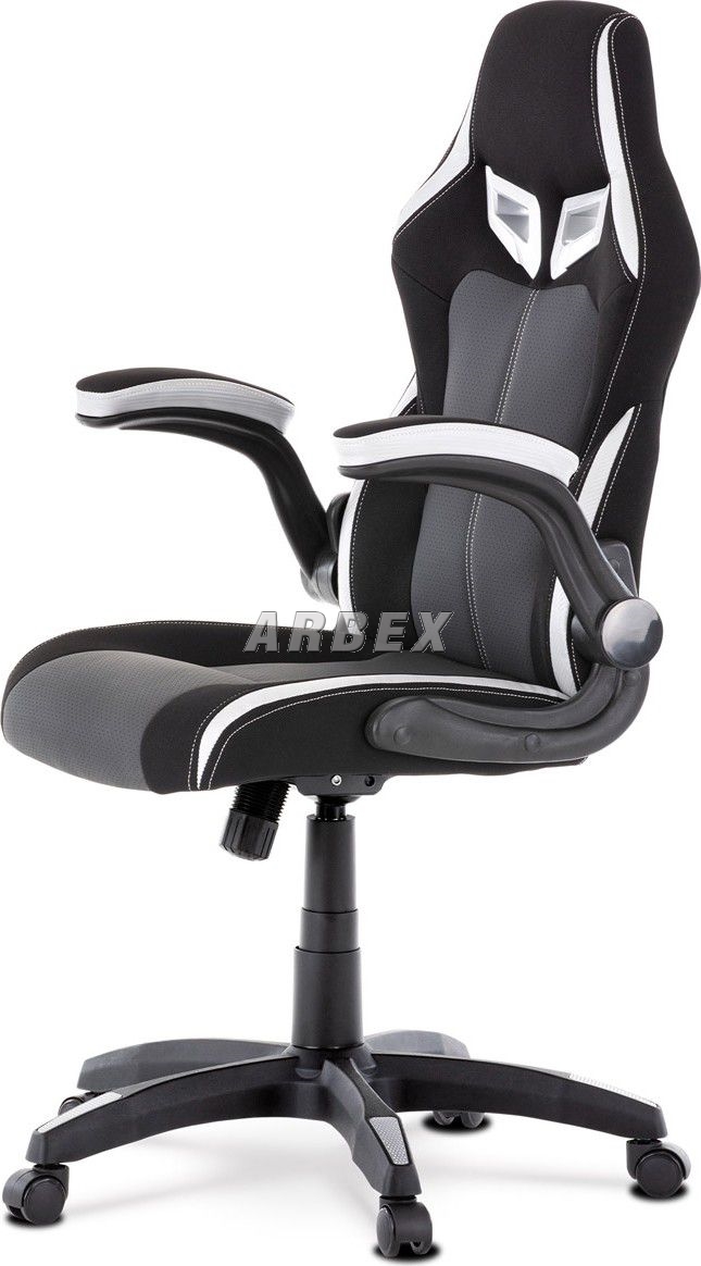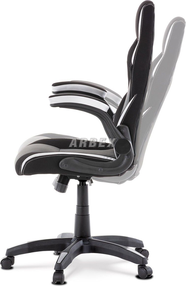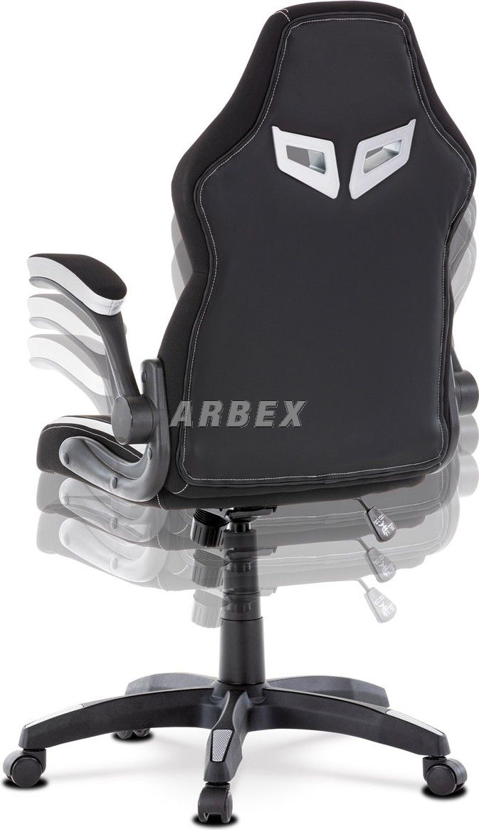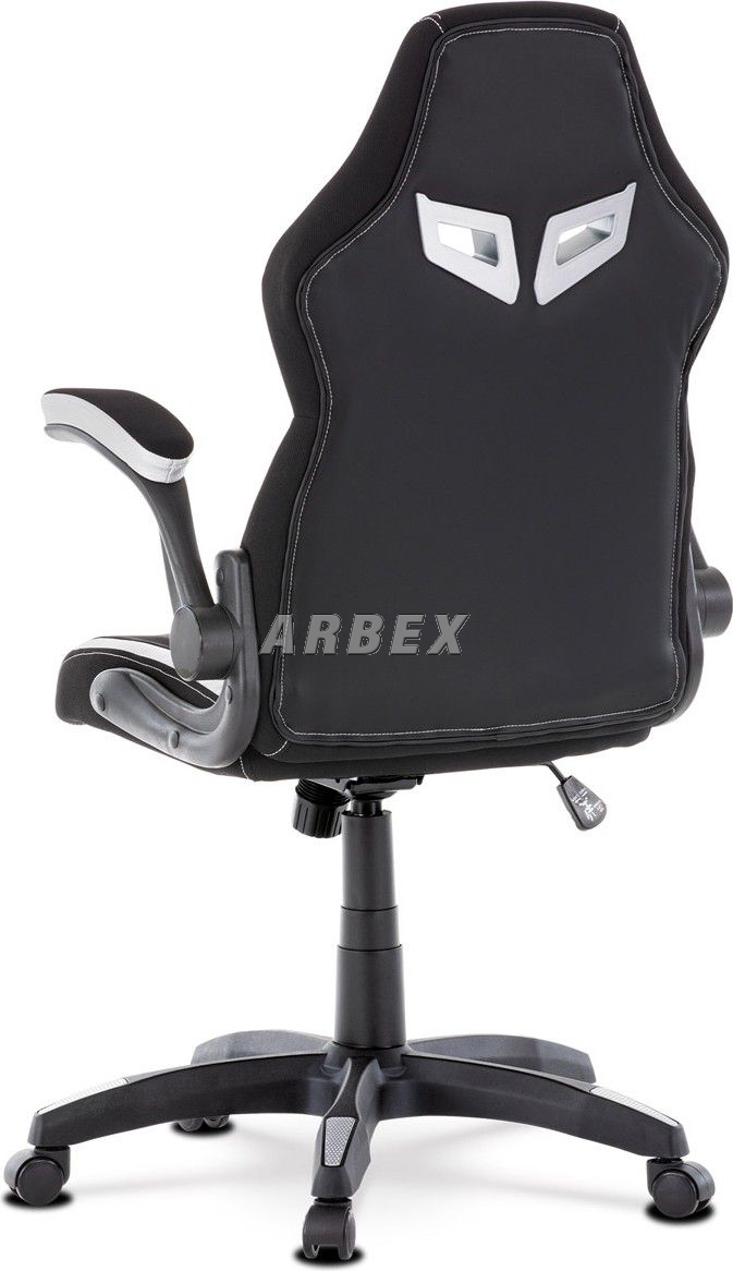 Velmi elegantní a výrazné herní křeslo v designu sedačky závodního vozu v provedení Dark Racing Style se zaoblenými liniemi ve výrazném kontrastu s ostře řezanými rysy plastového lemování otvorů na „bezpečnostní pásy“ v barevném odstínu stříbrných doplňků. Lemování má vytažené horní vnější rohy, čím ještě více vyniká stylizovaný design závodů a rychlosti. Tyto otvory v horní části opěráku mají nejen potřebný závodní vzhled, ale také usnadňují manipulaci. Potah je kombinací černé látky, černé perforované ekokůže a stříbrnými doplňky rovněž z ekokůže. Jako podtržení sportovního designu jsou stříbrné doplňky v dekoru Carbon. Obvodové i centrální prošití je v bílé barvě. Polstrování je z kvalitní PU pěny. židle je vybavena houpacím mechanismem s nastavením protiváhy a aretací v základní poloze. Tuhost protiváhy lze regulovat velkým plastovým šroubem, umístěným pod sedákem. Výška sezení se upravuje páčkou na pravé straně přes kvalitní plynový píst. Znavené ruce z celodenního hraní či práce si můžete pohodlně položit na polstrované odklápěcí područky, na ložné ploše polstrované černou látkou a na obvodové stříbrnou ekokůží. Akční rádius odklopení je 0°-90°, čímž se dostanou do zákrytu s opěrákem a nijak neomezují pohyb. Šíře područek je 9 cm, ložná plocha 27 cm a výška 3 cm. Opěrák je vyšší, s integrovanou statickou opěrkou hlavy. Střed sedáku a opěráku je čalouněn černou ekokůží s hustou mikroperforací. Tuto prodyšnou úpravu oceníte zejména při dlouhém sezení a v letních parných měsících. Polstrování je ergonomicky tvarováno a slouží jako výborná opora zad. Kříž je velký černý plastový o průměru 70 cm, což zajišťuje dokonalou stabilitu i u fyzicky náročnějších her. Na koncích ramen kříže jsou v barvě doplňků protiskluzové plochy. Kolečka jsou plastová pr. 5 cm s černou obvodovou gumou, vhodná na tvrdé podlahy. Nosnost židle je až 130 kg. Toto herní a kancelářské křeslo je skvělou volbou, ať stojí za hracím či kancelářským stolem. Vždy působí jako nepřehlédnutelný designový solitér. Kvalita zpracování, důraz na pohodlí a ergonomii, to zaručuje pohodu při dlouhých herních večerech i denní kancelářské práci. Budete mít velké dilema, zda toto křeslo opustíte a vezmete zavděk obyčejným křeslem a nebo na něm zůstanete i při relaxu či sledování televize ...