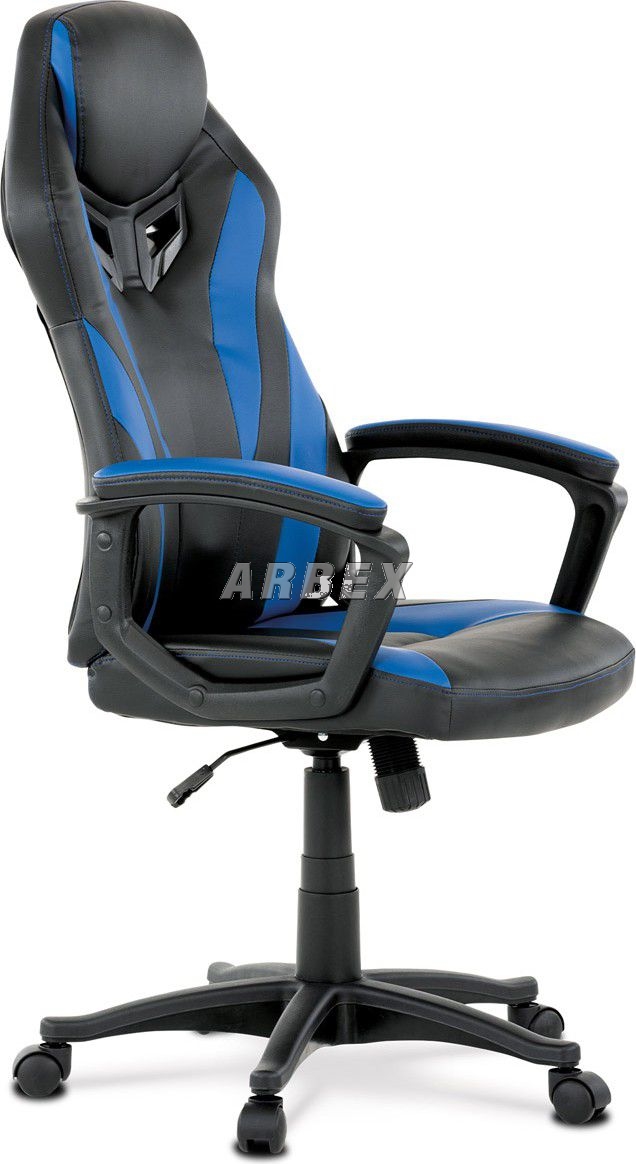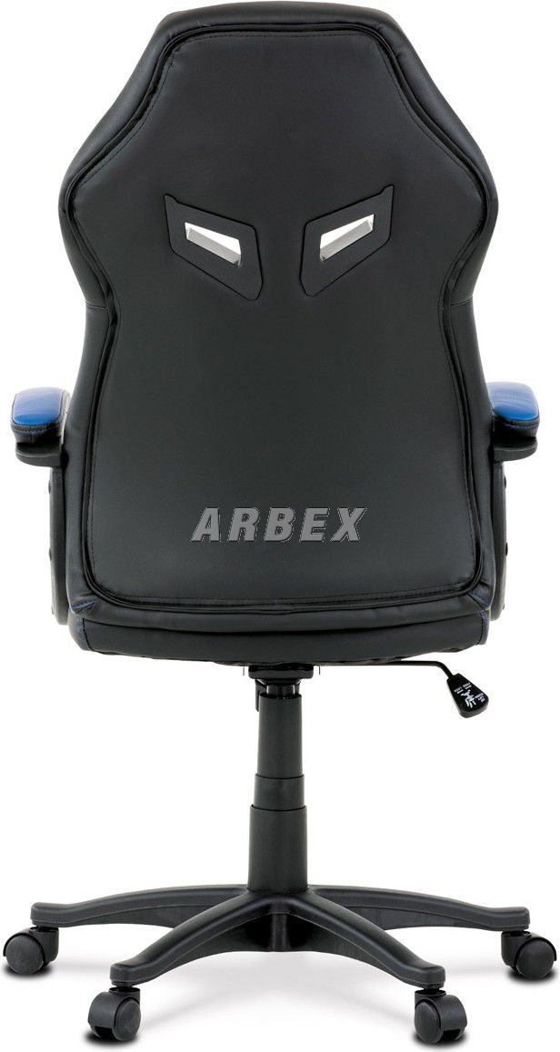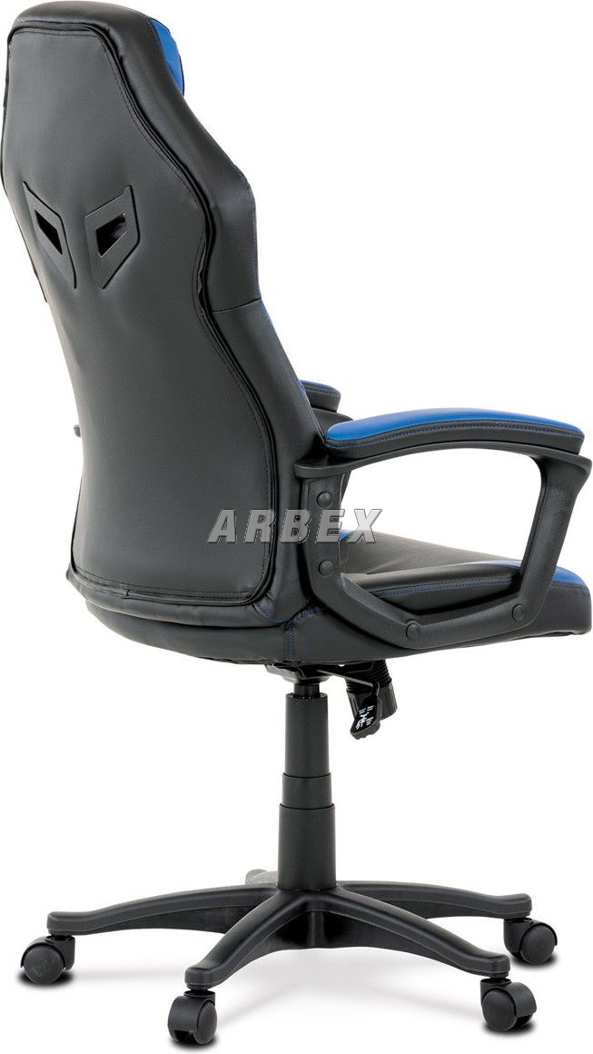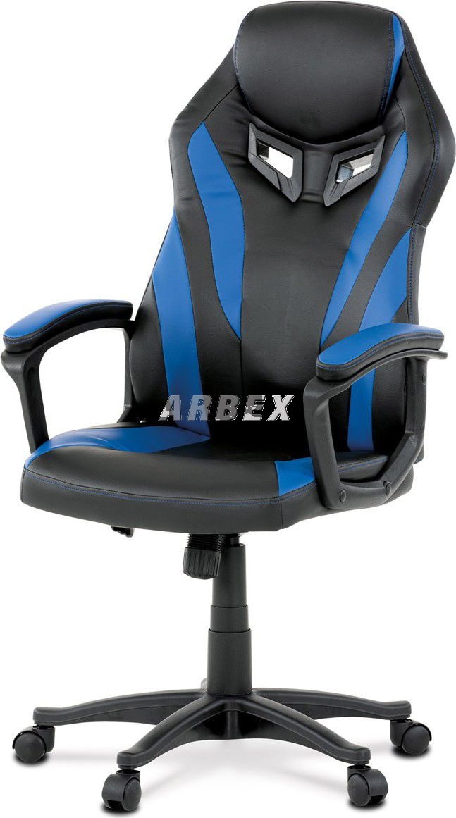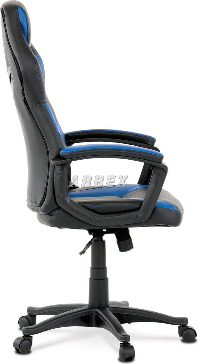 Elegantní herní židle v designu sedačky závodního vozu v provedení Dark Style se zaoblenými liniemi ve výrazném kontrastu s ostře řezanými rysy plastového lemování otvorů na „bezpečnostní pásy“. Tyto designové otvory v horní části opěráku nejen potřebný závodní vzhled, ale také usnadňuje manipulaci. Potah je kombinace modré a černé ekokůže. Obvodové prošití je v modrém odstínu. Polstrování je z kvalitní PU pěny. židle je vybavena houpacím mechanismem s nastavením protiváhy a aretací v základní poloze. Tuhost protiváhy lze regulovat velkým plastovým šroubem, umístěným pod sedákem. Výška sezení se upravuje páčkou na pravé straně přes kvalitní plynový píst. Ruce unavené z hraní si můžete pohodlně položit na plastové područky, na ložné ploše polstrované opět modrou a černou ekokůží. Šíře područek je 6 cm, ložná plocha 33 cm a výška 3 cm. Opěrák je vyšší s integrovanou statickou opěrkou hlavy. Kříž je černý plastový o průměru je 64 cm, což zajišťuje výbornou stabilitu i u fyzicky náročnějších her. Kolečka jsou plastová pr. 5 cm, vhodná na koberce. Nosnost židle je až 120 kg. S touto židlí prožijete nejen pohodlí, ale i pohodu při herních večerech i nocích.