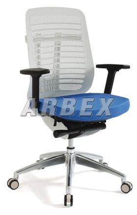 Kancelářské křeslo hliníkový kříž, černé područky, bílý korpus, sedák látka modrá