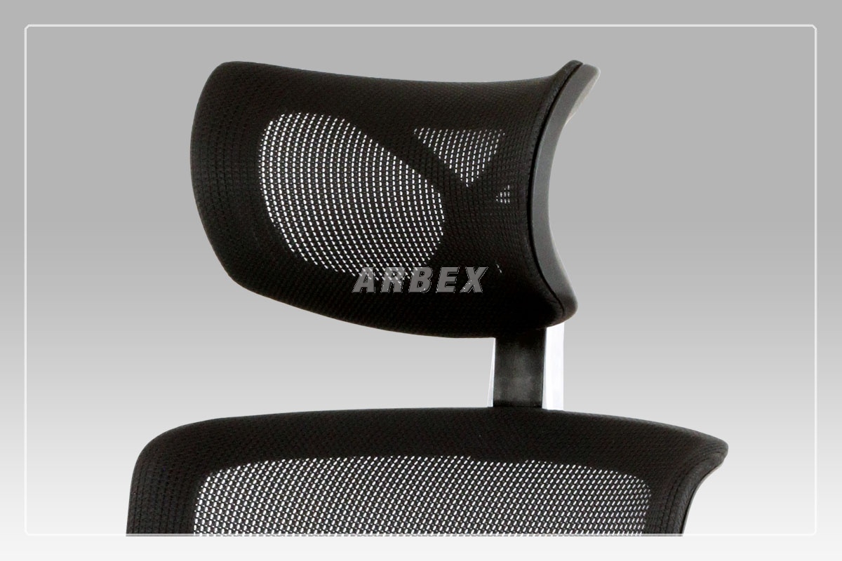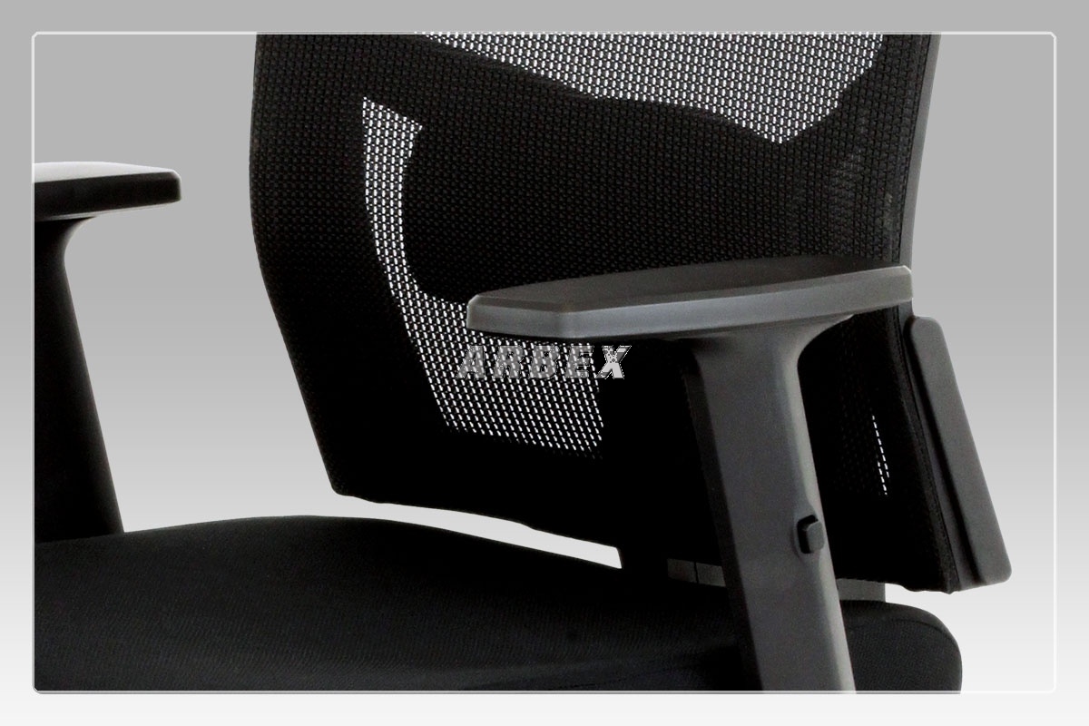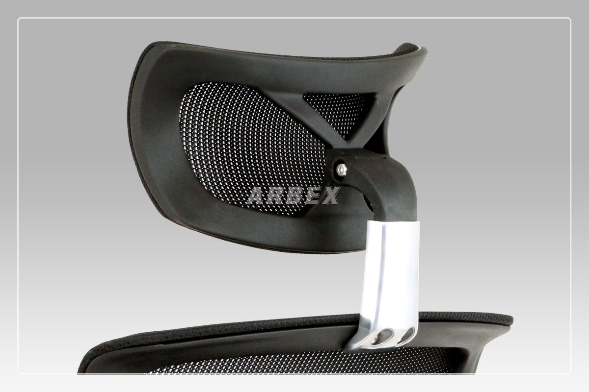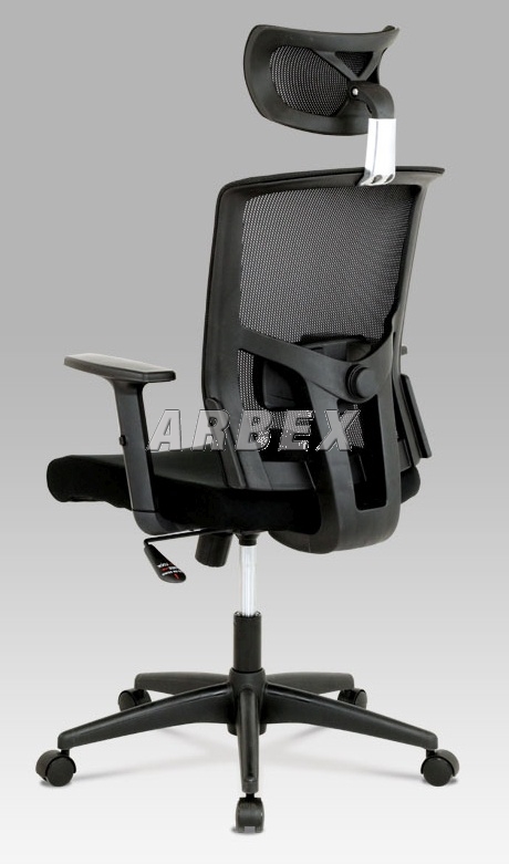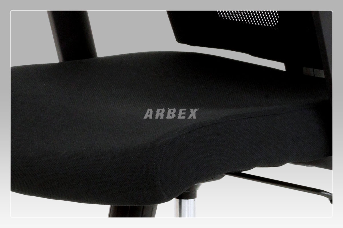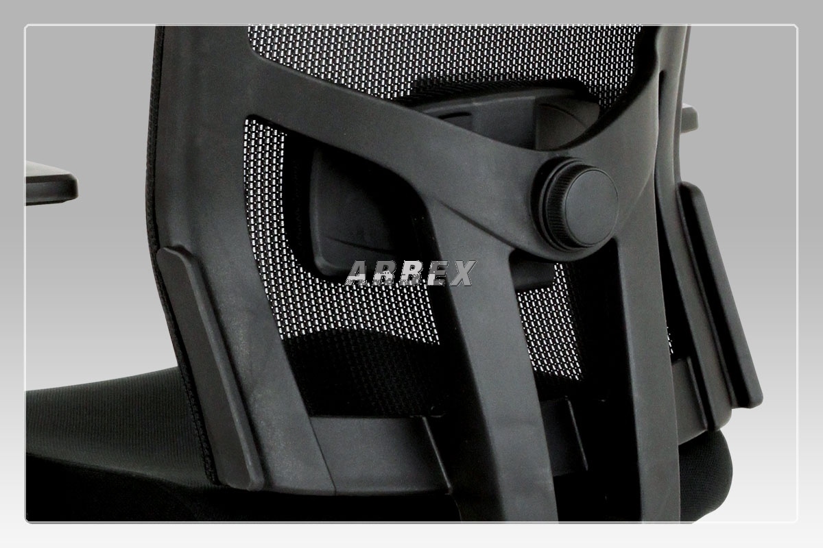 opěrák potažen síťovinou, sedák čalouněn černou látkou