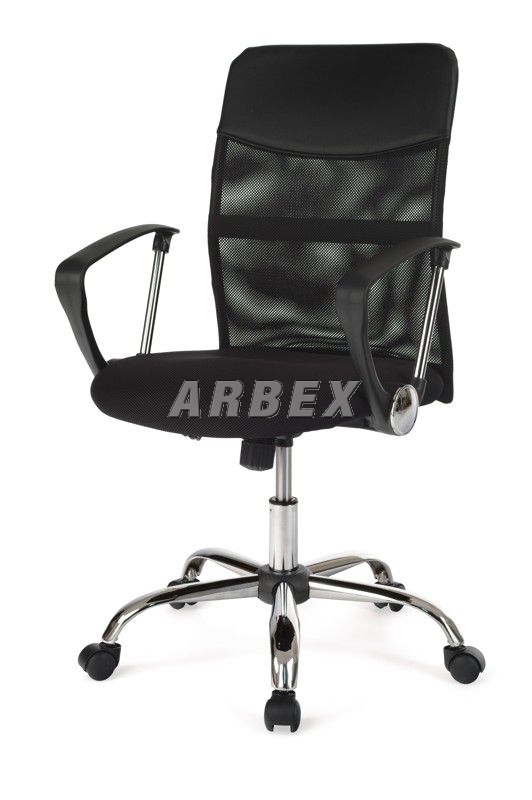 Čalounění sedáku látka MESH černé barvy, na opěráku je kombinace černé látky MESH a barevné.