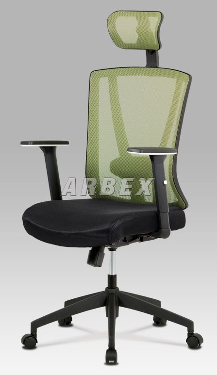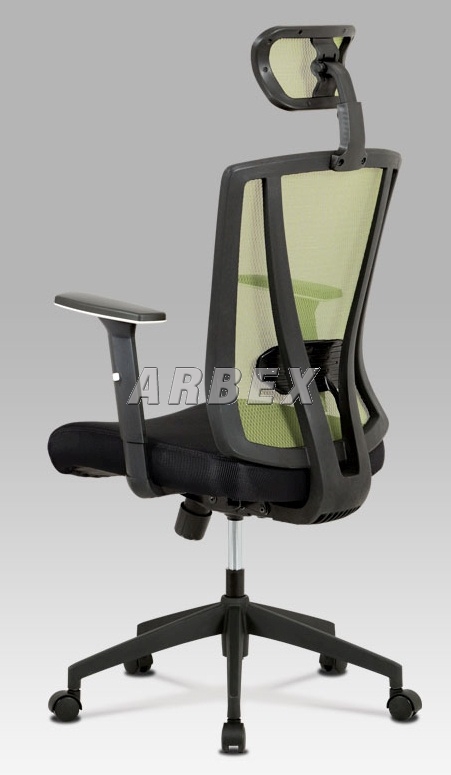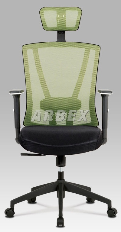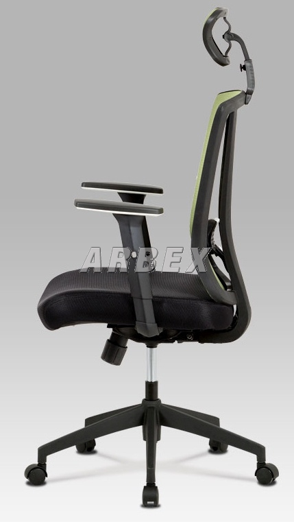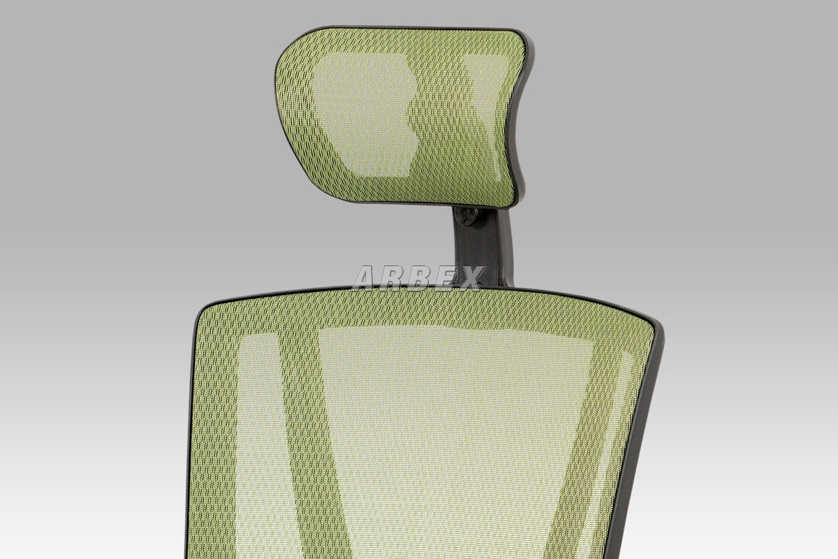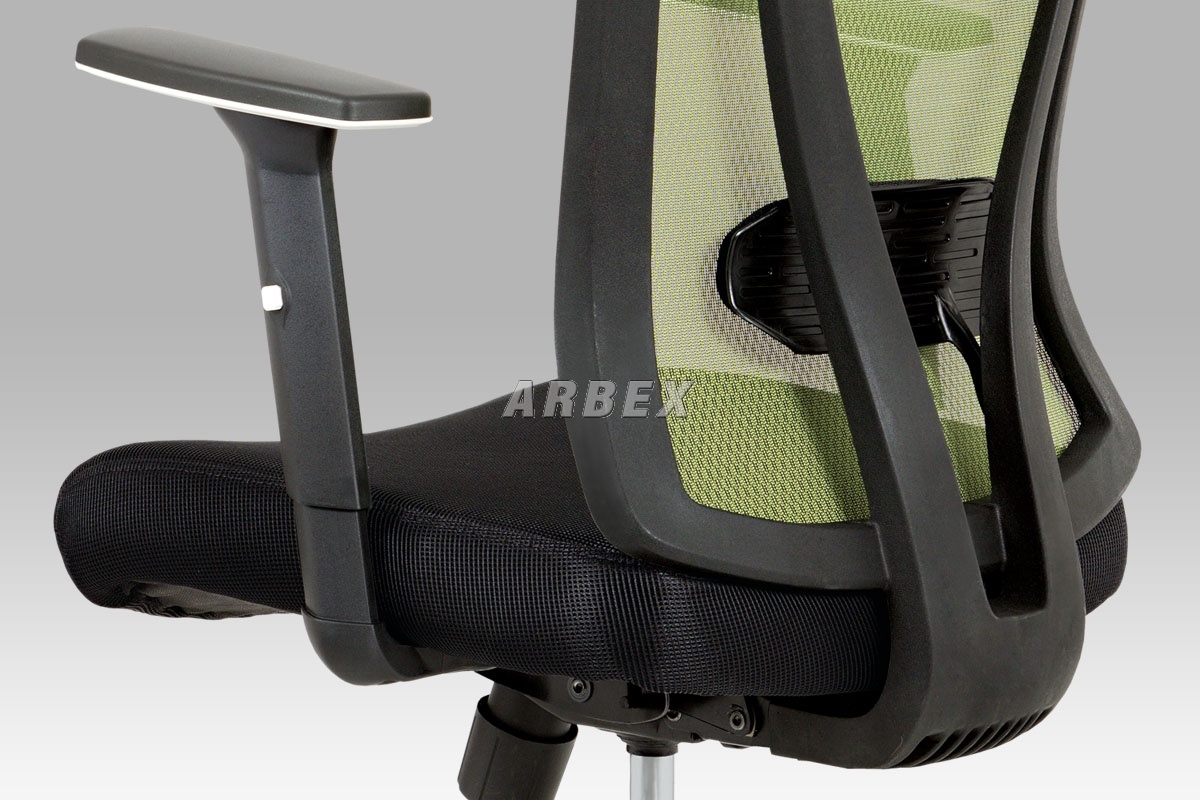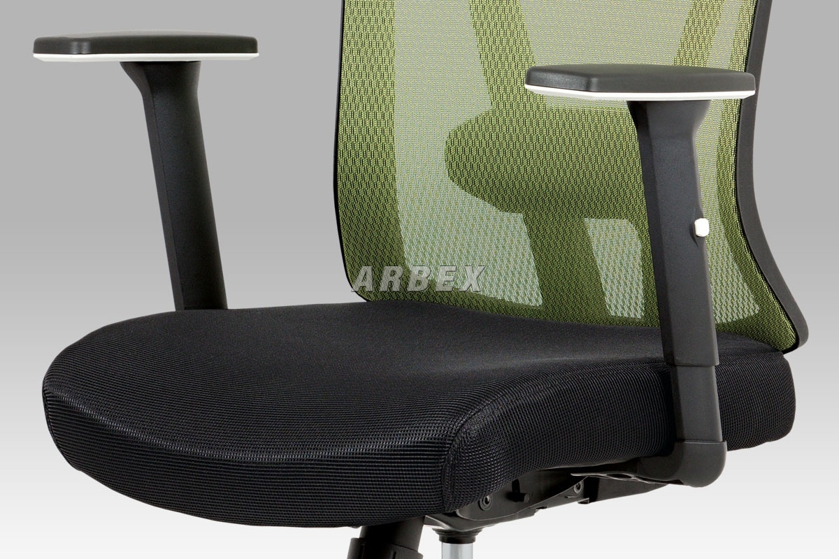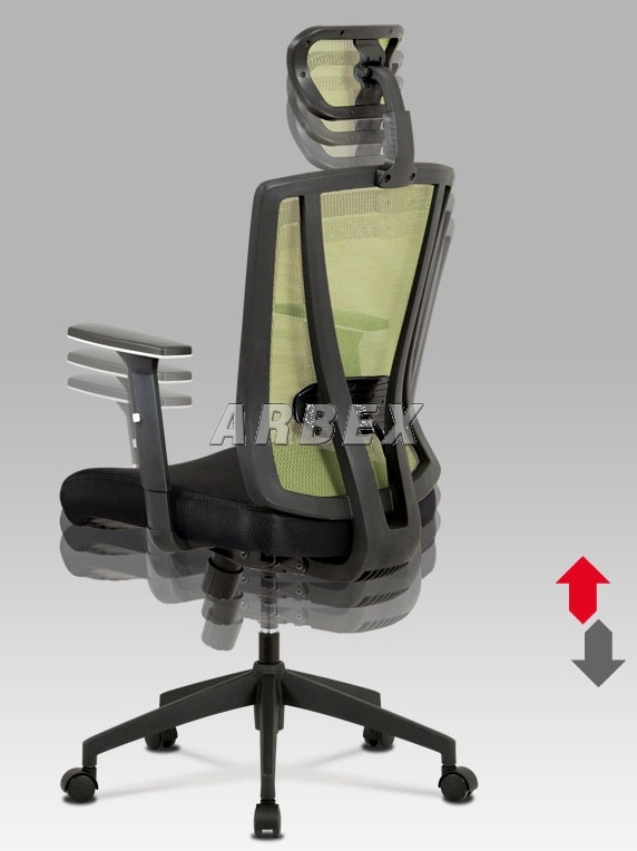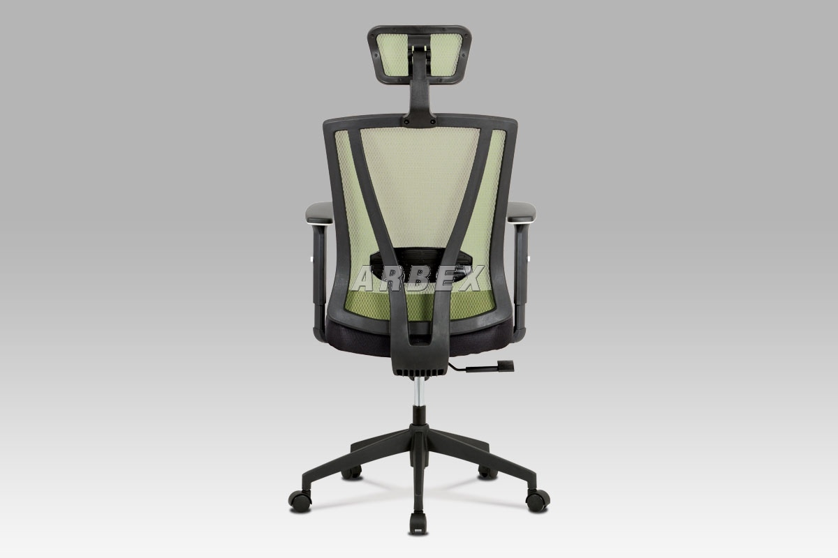 celoplastový opěrák se středovou výztuhou je potažen zelenou síťovinou MESH