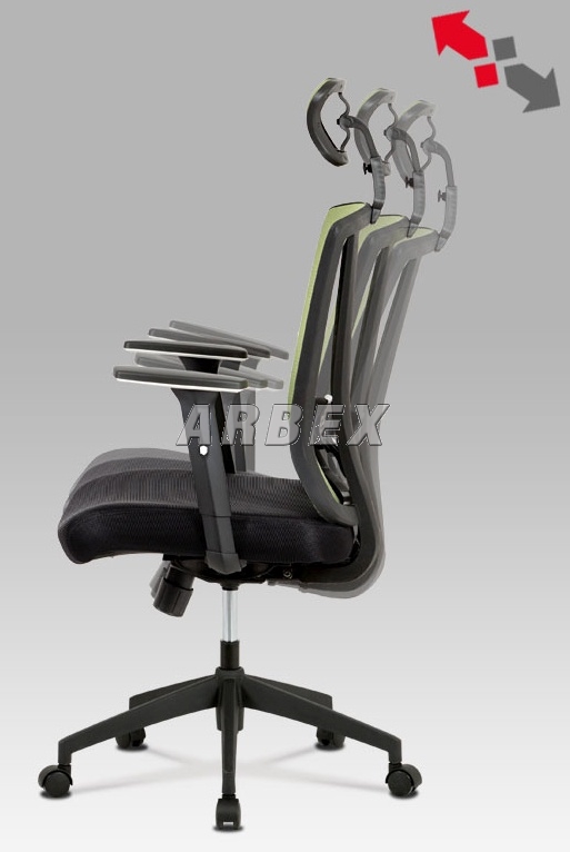 Vaše pohodlí je pro nás to nejdůležitější, a proto má tato židle elegantní a výškově nastavitelnou opěrku hlavy, která je potažena zelenou síťovinou a díky tomu je dokonale prodyšná