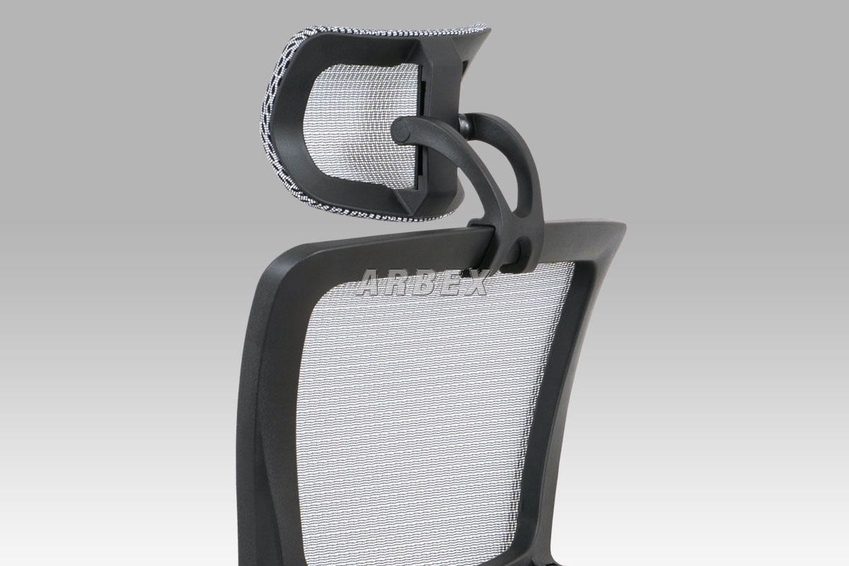 prodyšná, výškově nastavitelná a polohovatelná opěrka hlavy, která je potažena černou síťovinou