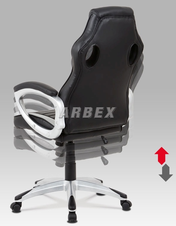 výškově nastavitelná, houpací mechanismus, velký plastový šroub upravující tuhost
