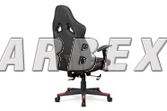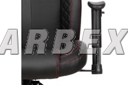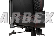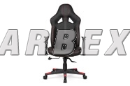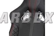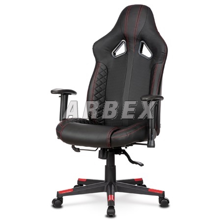 potah je z černé ekokůže s výrazným červeným prošíváním celého křesla