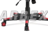 židle má také nastavitelné područky, plastový kříž a pogumovaná kolečka vhodná na tvrdé podlahy