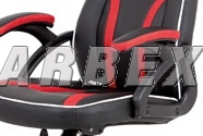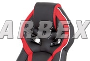 detaily opěráku, sedáku i područek jsou čalouněné červenu látkou MESH
