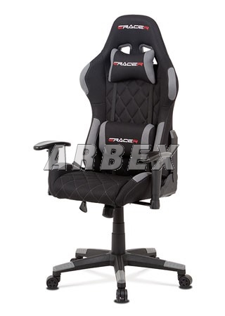 je potažená černo-šedou látkou se stylovým šedým prošitím sedáku i opěráku