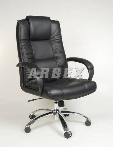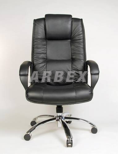 Kancelářské křeslo - kvalitní, ergonomicky tvarované křeslo, čalouněné TOP hovězí kůží vysoké kvality. Křeslo je vybavené pevným kovovým chromovaným křížem o průměru 70 cm s designovými dvojkolečky a plastovými čalouněnými područkami. Tato pevná konstrukce umožňuje nosnost do 120 kg hmotnosti sedícího. Vnitřní sedací plocha křesla vč. vrchní plochy područek, je čalouněna kvalitní TOP – hovězí kůží, boční a zadní části kvalitní stejnobarevnou koženkou. Kůže na střední části opěráku (pod opěrkou hlavy) a sedáku je jemně perforovaná. Křeslo je vybaveno houpacím mechanismem umožňujícím nastavení tlaku dle hmotnosti sedícího a zajištění v přední – základní poloze. Vzhledem k výšce opěradla a opěrky hlavy je křeslo vhodné pro výšku postavy 175 - 185 cm.