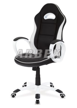 kancelářská křeslo v kombinaci barev černá a bílá koženka, vysoký opěrák,