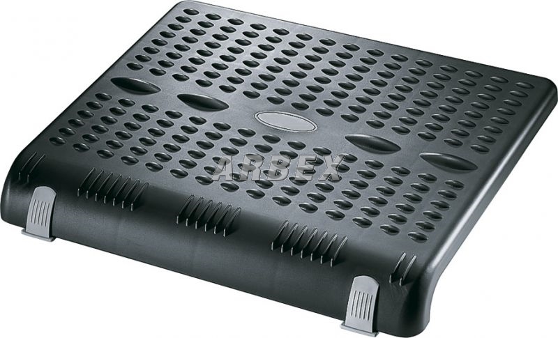 Podpěrka chodidel ze stabilní umělé hmoty s velkou nosnou plochou. Zlepšuje držení těla při sezení a ulevuje páteři. Výškově nastavitelná. Protiskluzová díky gumovým nohám. Černá barva. Rozměr: 45 x 9/11,5/14 x 37,5 cm.