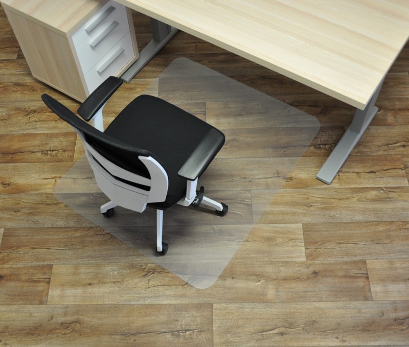 Podložka pod kolečkové židle na tvrdou podlahu. Podložka je vyrobena z kvalitního, nelámavého, oděru odolného a ekologicky zcela nezávadného polykarbonátu. Vrchní strana podložky má drobnou strukturu, která zabraňuje zrcadlovému efektu a umožňuje židlím pohybovat se tiše se správným třením. Spodní strana je pokryta tenkým protiskluzovým filmem pro pevné přilnutí na hladký povrch.