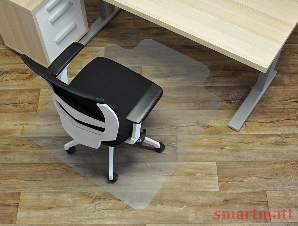 Podložka pod kolečkové židle na tvrdou podlahu. Podložka je vyrobena z kvalitního, nelámavého, oděru odolného a ekologicky zcela nezávadného polykarbonátu. Vrchní strana podložky má drobnou strukturu, která zabraňuje zrcadlovému efektu a umožňuje židlím pohybovat se tiše se správným třením. Spodní strana je pokryta tenkým protiskluzovým filmem pro pevné přilnutí na hladký povrch.