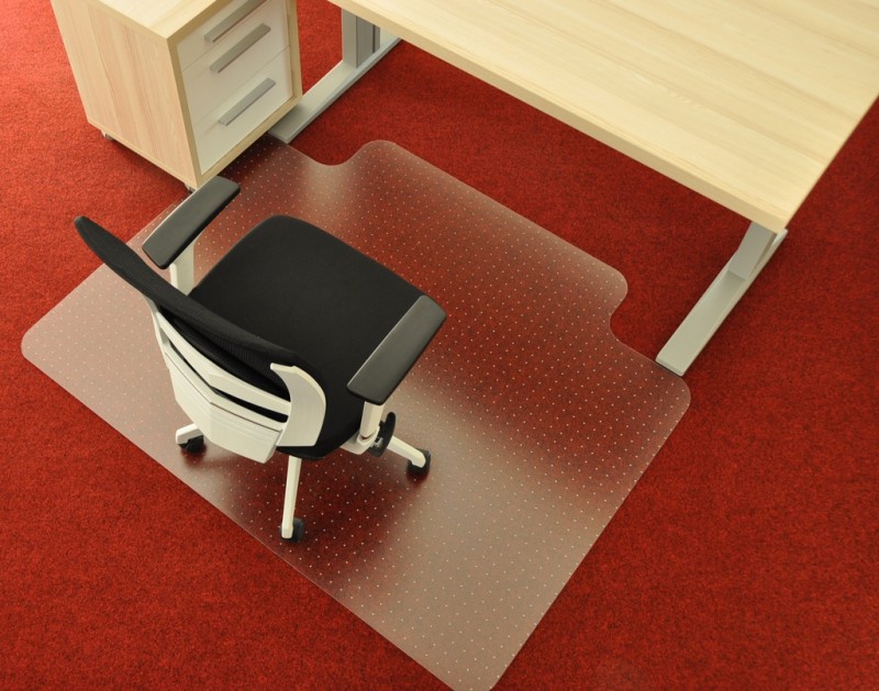 Podložka pod kolečkové židle na koberce. Podložka je vyrobena z kvalitního, nelámavého, oděru odolného a ekologicky zcela nezávadného polykarbonátu. Vrchní strana podložky má drobnou strukturu, která zabraňuje zrcadlovému efektu a umožňuje židlím pohybovat se tiše se správným třením. Spodní strana je opatřena stovkami hrotů pro pevné přilnutí na koberec. Výřez je na delší straně.