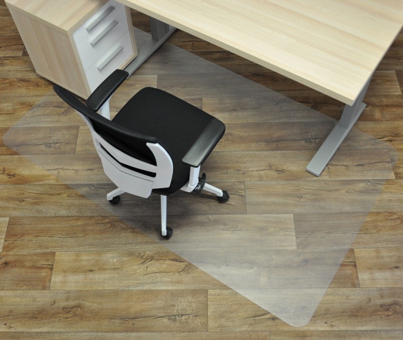 Podložka pod kolečkové židle na tvrdou podlahu. Podložka je vyrobena z kvalitního, nelámavého, oděru odolného a ekologicky zcela nezávadného polykarbonátu. Vrchní strana podložky má drobnou strukturu, která zabraňuje zrcadlovému efektu a umožňuje židlím pohybovat se tiše se správným třením. Spodní strana je pokryta tenkým protiskluzovým filmem pro pevné přilnutí na hladký povrch.