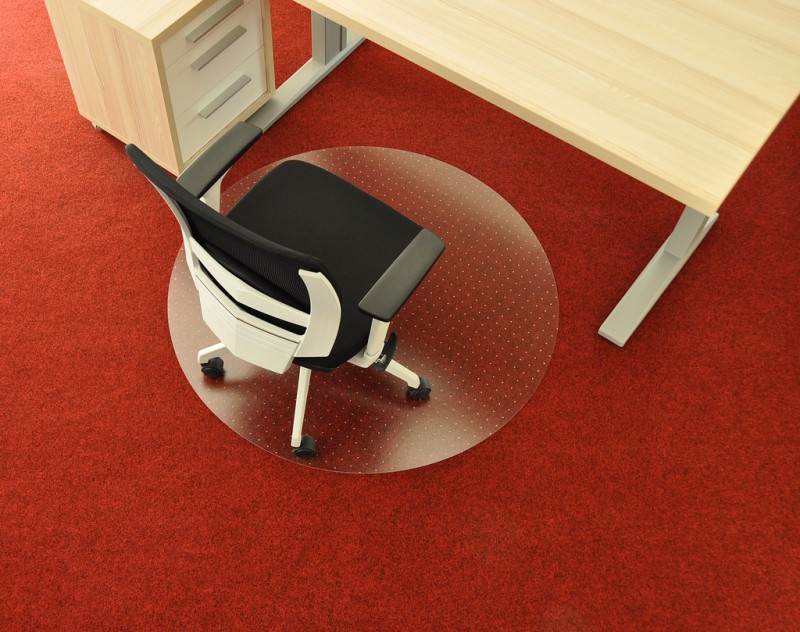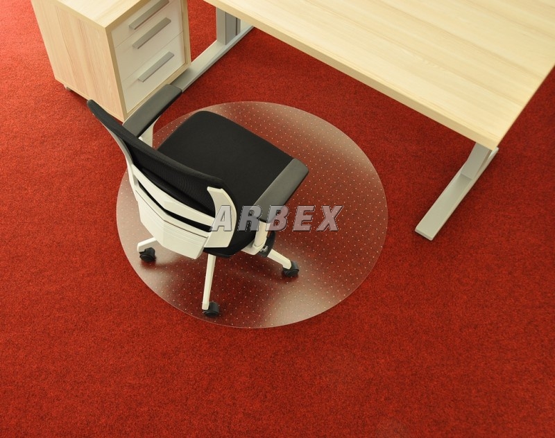 Podložka pod kolečkové židle na koberce. Podložka je vyrobena z kvalitního, nelámavého, oděru odolného a ekologicky zcela nezávadného polykarbonátu. Vrchní strana podložky má drobnou strukturu, která zabraňuje zrcadlovému efektu a umožňuje židlím pohybovat se tiše se správným třením. Spodní strana je opatřena stovkami hrotů pro pevné přilnutí na koberec.