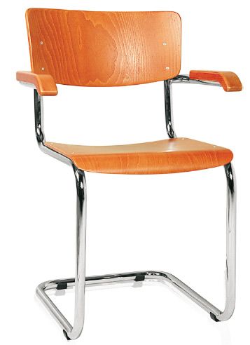 Skořepinová židle. Sedák a opěrák buková překližka s možností moření v několika odstínech. Kostra ocelová chromová.
