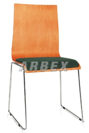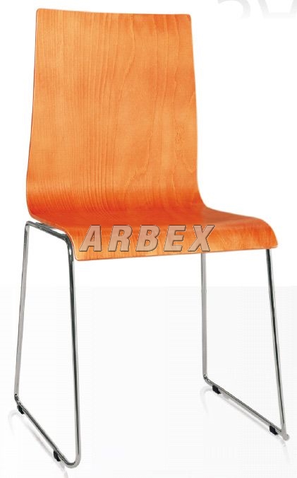 Skořepinová židle. Sedák a opěrák buková překližka s možností moření v několika odstínech, možnost čalouněného panelu sedáku a opěráku. Kostra ocelová chromová.