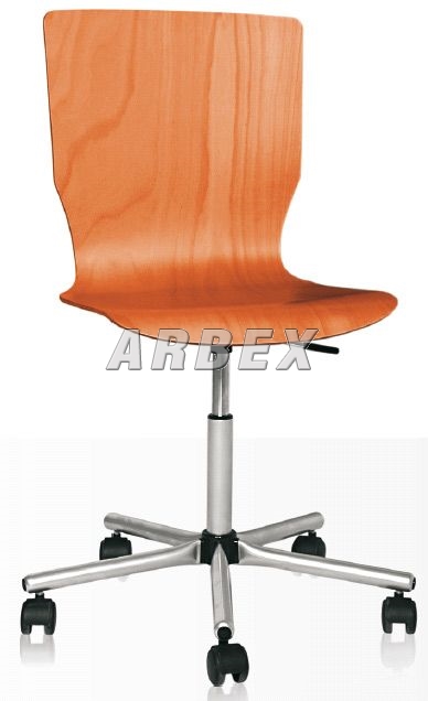 Skořepinová židle. Sedák a opěrák buková překližka s možností moření v několika odstínech, možnost čalouněného panelu sedáku a opěráku. Kostra chromová ocelová.